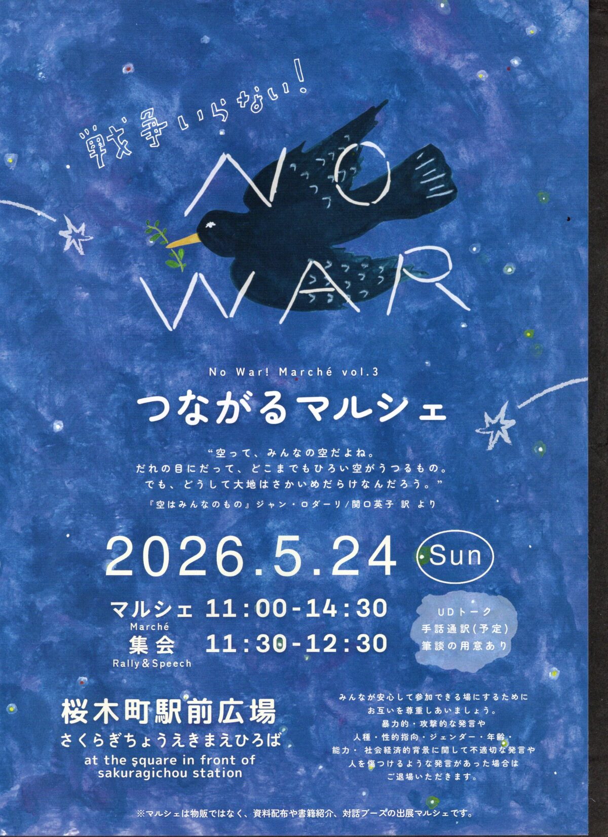 日 時 2026年5月24日(日) マルシェ 11時〜2時半 集会 11時半〜12時半